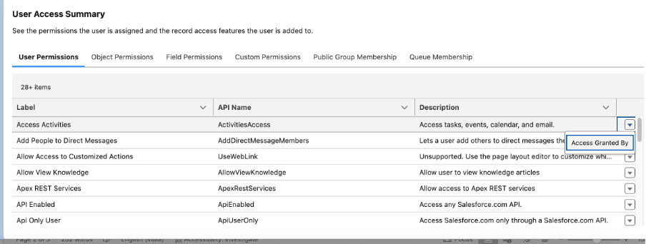 It’s very easy now to view the permission sets, permission set groups, and profiles that grant access to an object, and the level of access granted.