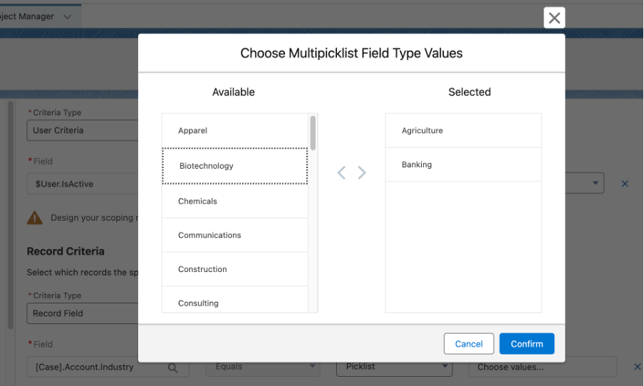 7) Reference Multiple Picklist Values in Restriction and Scoping Rules: